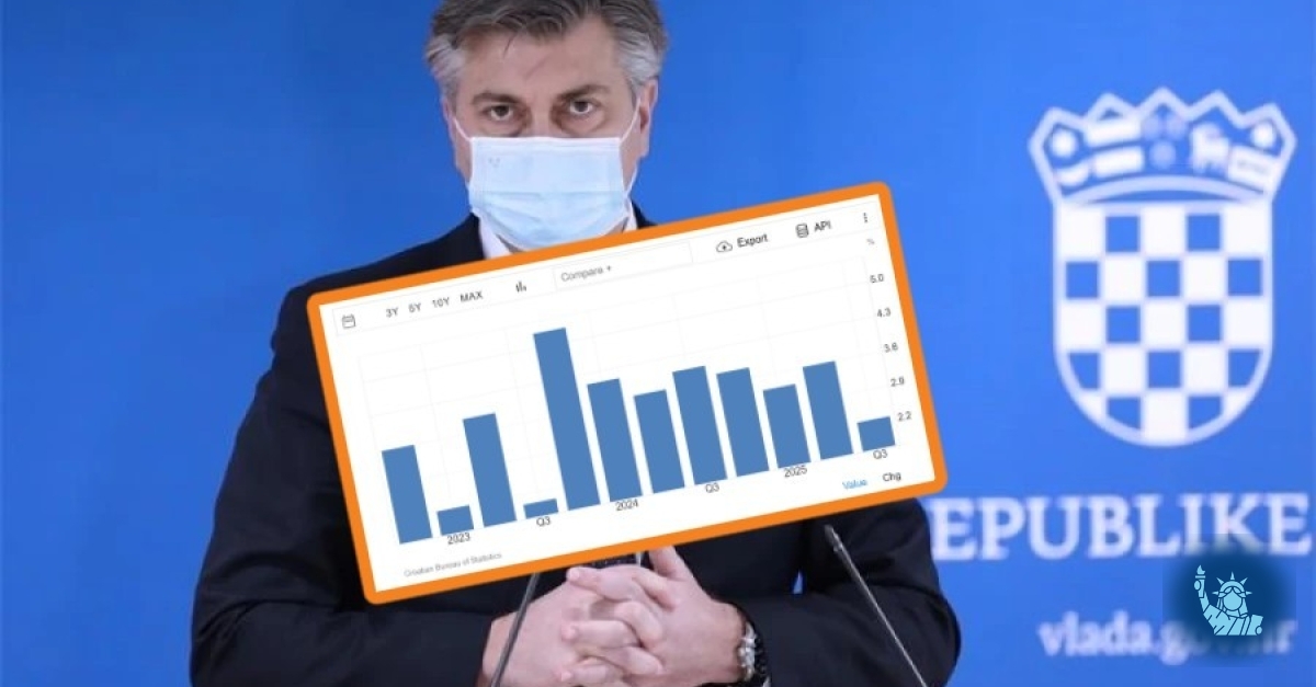Hrvatska je u trećem kvartalu 2025. godine zabilježila godišnji rast BDP-a od 2,3 posto, što je najslabiji rezultat našeg gospodarstva u zadnje dvije godine. Primjerice, u prethodnom kvartalu godišnji rast je iznosio 3,6 posto.